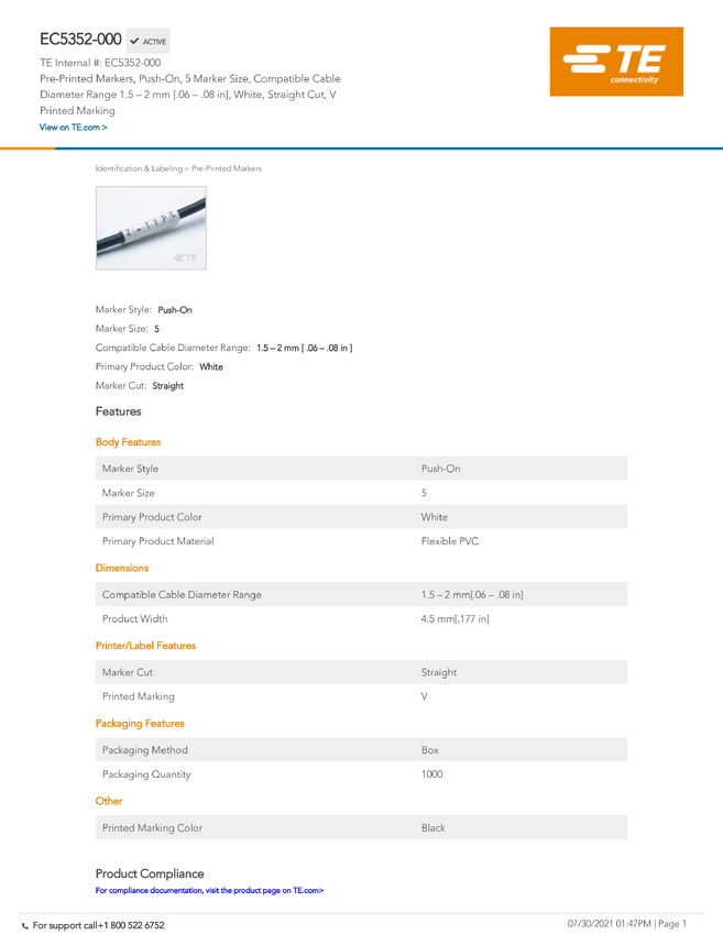 TE Connectivity EC5352-000 TE RAY Cable Identification - Non-Computerized