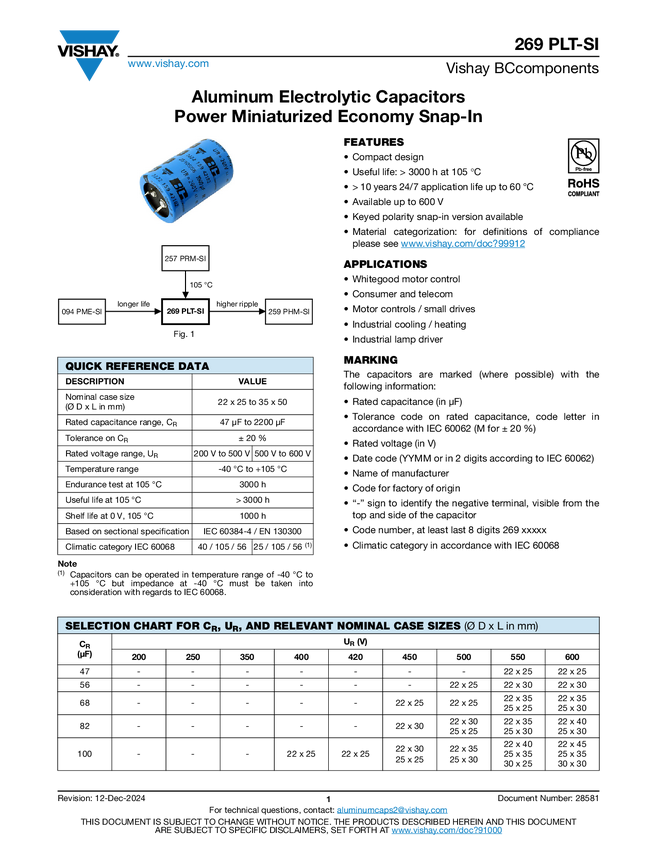 Aluminum Electrolytic Capacitors Power Miniaturized Economy Long Life Snap-In