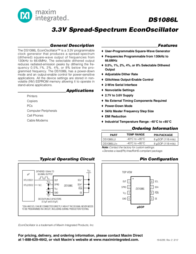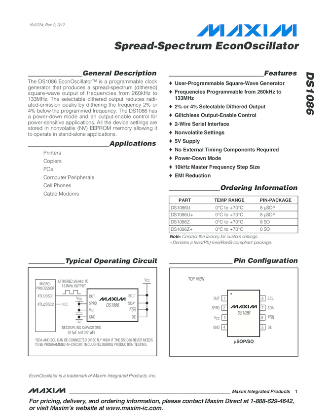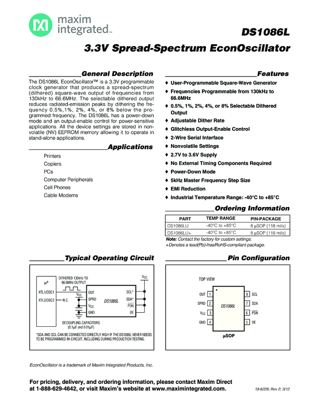 DS1086L Spread-Spectrum EconOscillator