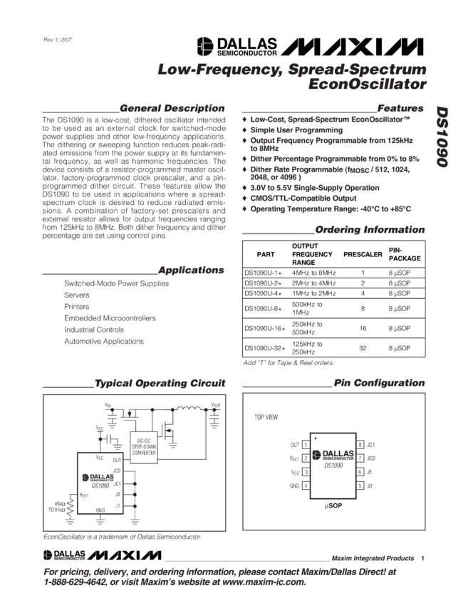 DS1090 Low-Frequency, Spread-Spectrum EconOscillator