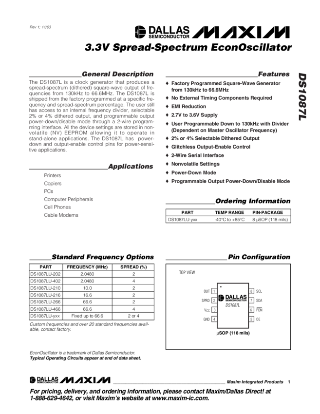 DS1087L 3.3V Spread-Spectrum EconOscillator