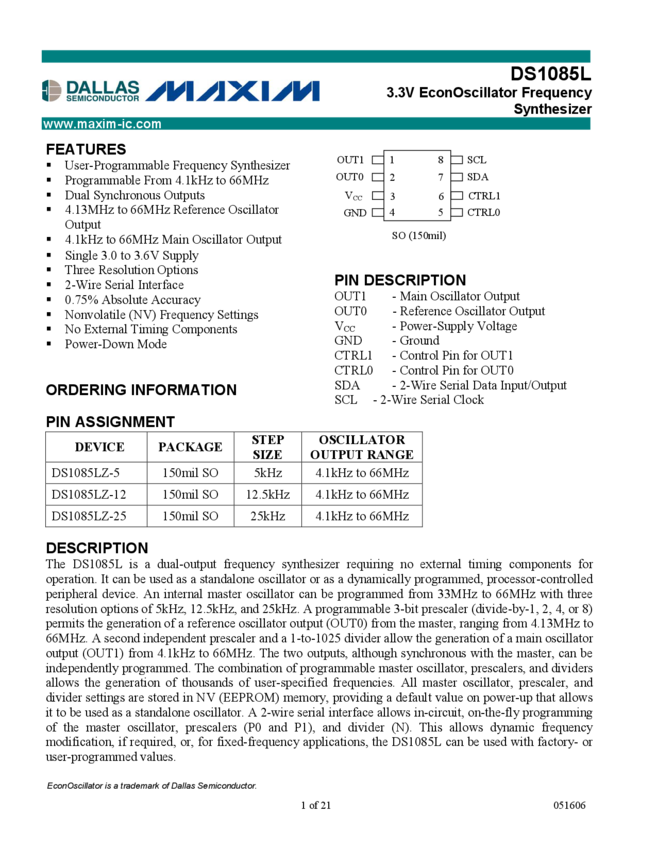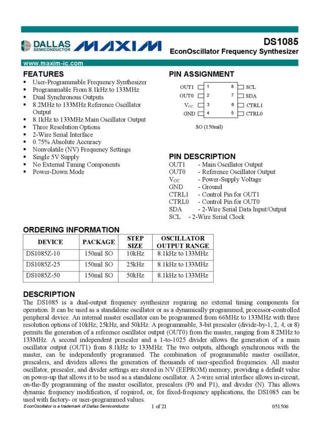 DS1085 EconOscillator Frequency Synthesizer