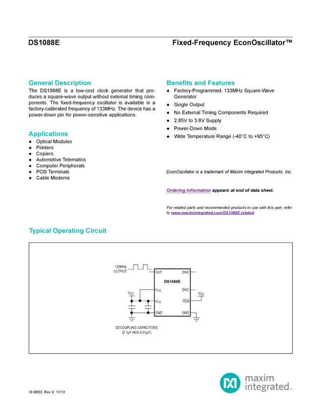 DS1088E Fixed-Frequency EconOscillator™