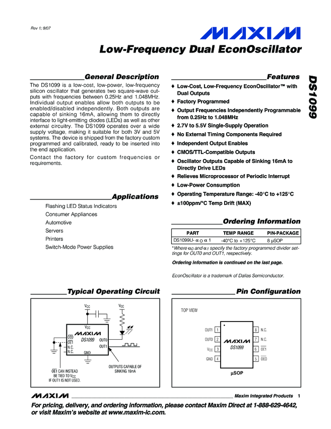 DS1099 Low-Frequency Dual EconOscillator