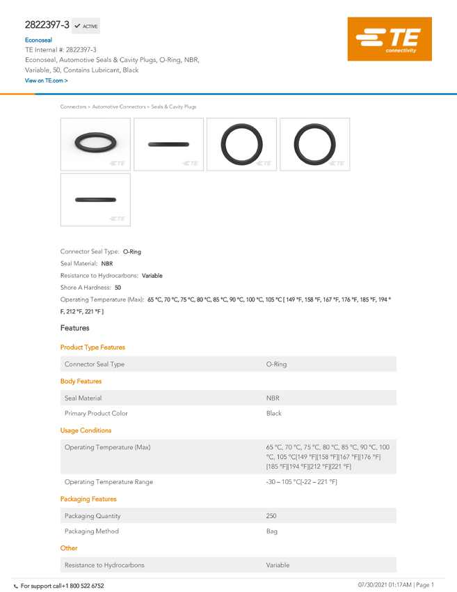 Econoseal - Seals TE AMP Econoseal - Seals 347707-1 TE Connectivity Zawartość: 1 szt.