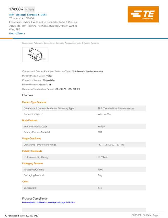 Econoseal - Connectors TE AMP Econoseal - Connectors 174880-7 TE Connectivity Zawartość: 1 szt.