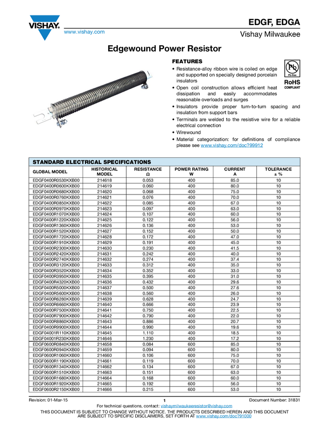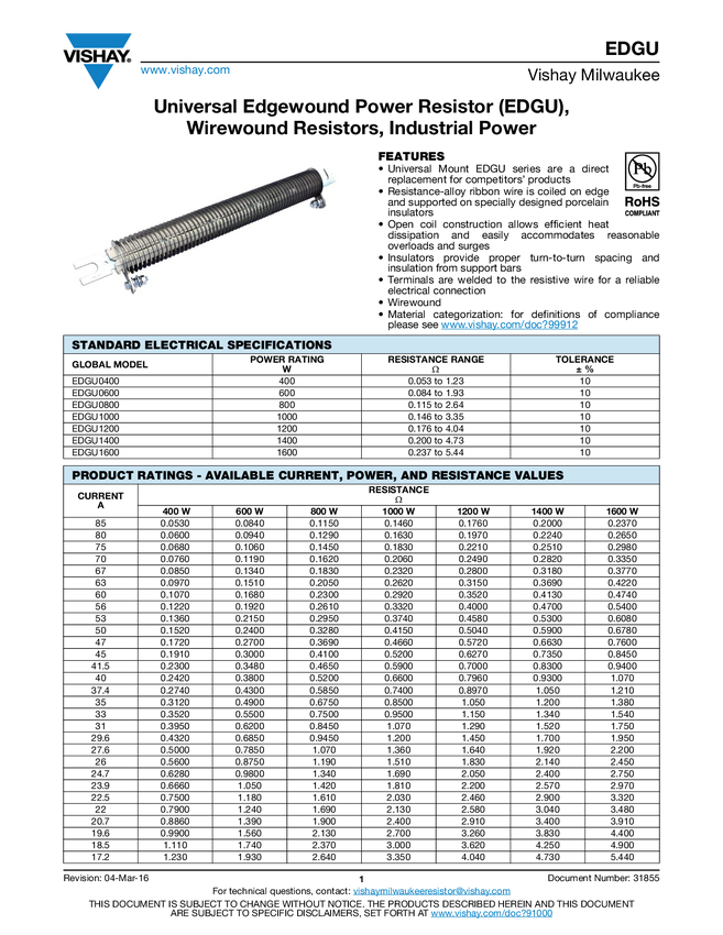 Universal Edgewound Power Resistor (EDGU), Wirewound Resistors, Industrial Power