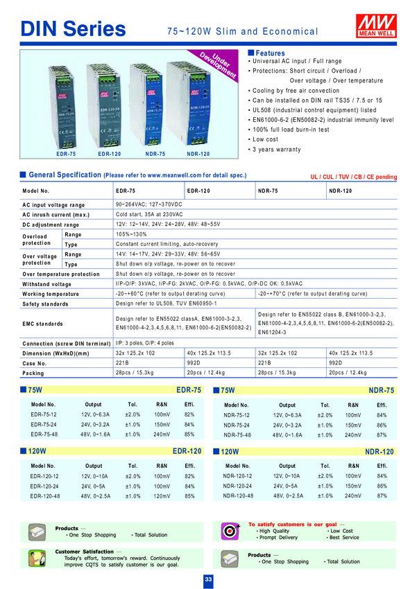 Zasilacz na szynę DIN 24V 6,5A 156W MEAN WELL | EDR-150-24