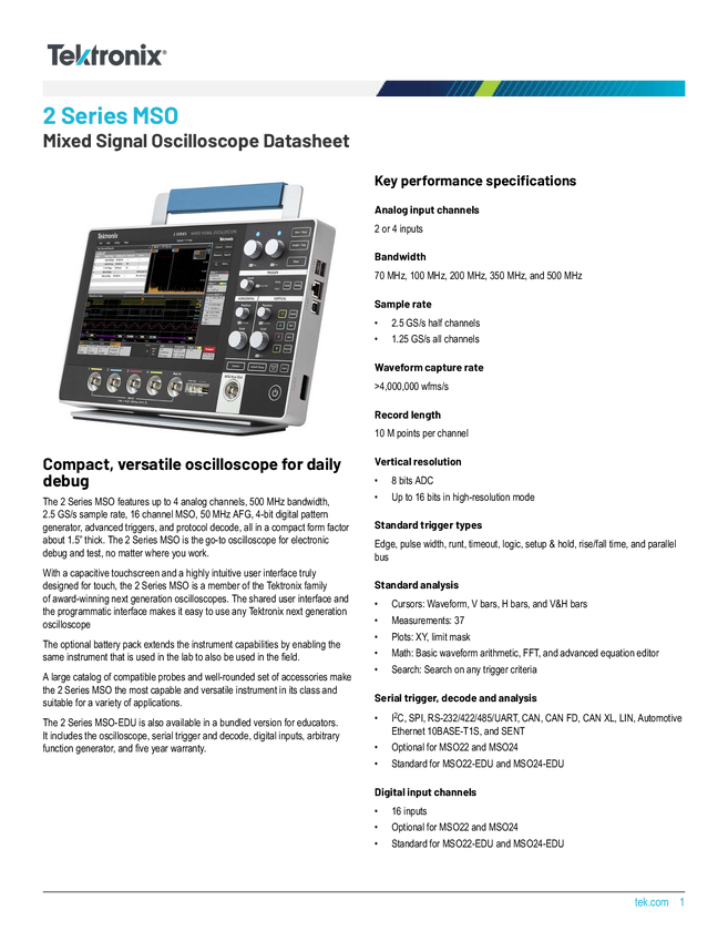 Oscyloskop cyfrowy Tektronix MSO24-EDU 2-BW-70 70 MHz 1.25 GSa/s