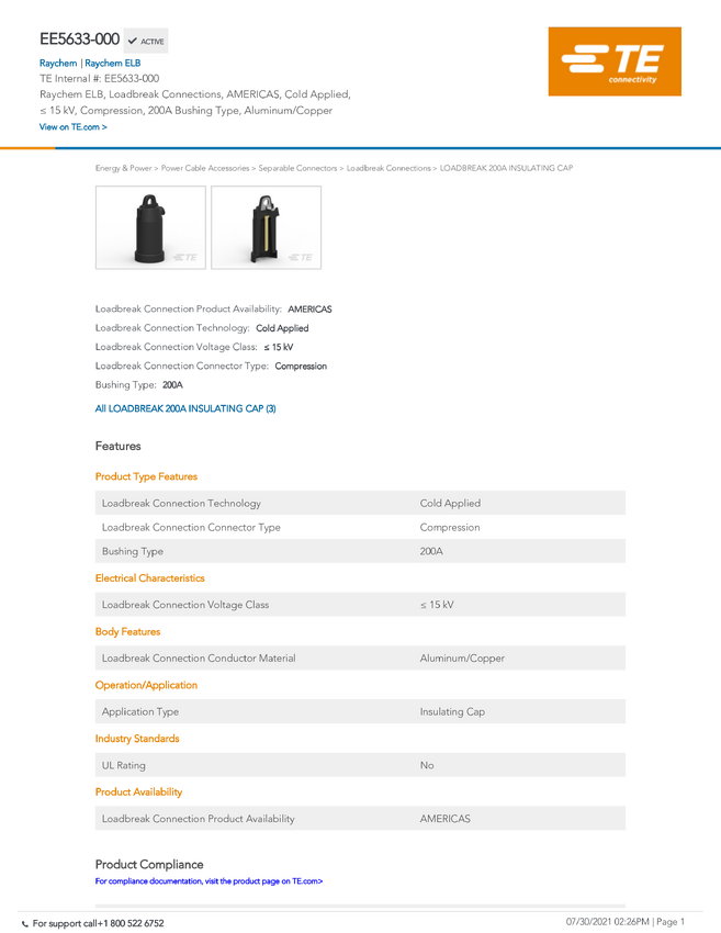 TE Connectivity TE TEE Switchgear Connection System EE5633-000, 1 szt.