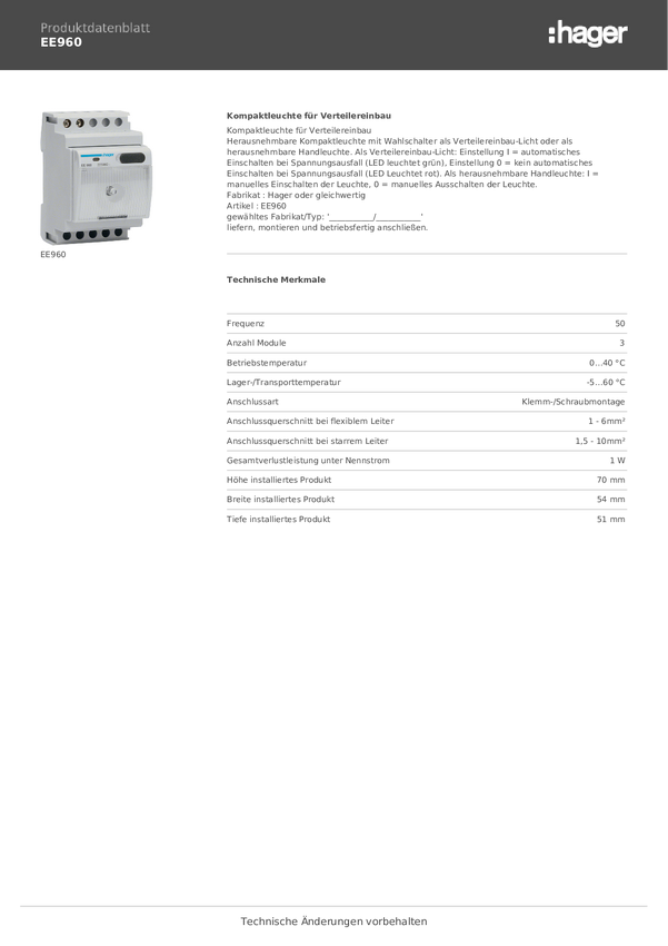 Hager EE960 Lampa 230 V 1 szt.