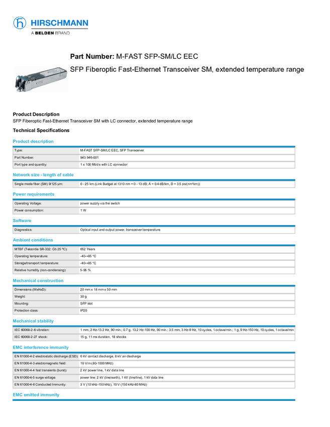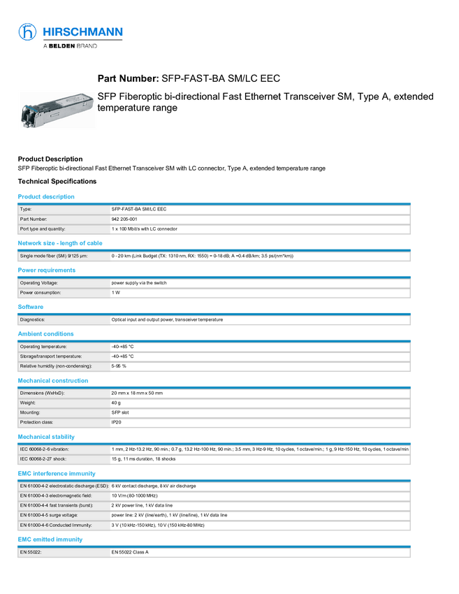Hirschmann SFP-FAST-BA SM/LC EEC Moduł SFP
