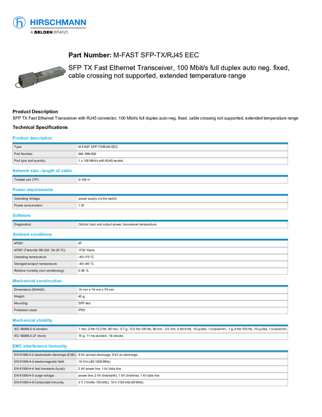 Hirschmann M-FAST SFP-TX/RJ45 EEC Moduł SFP