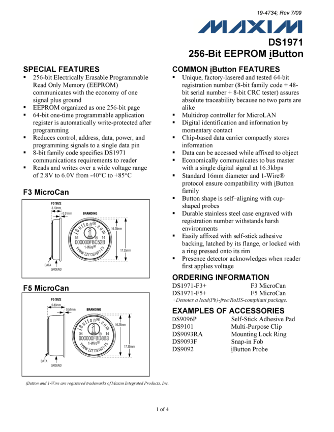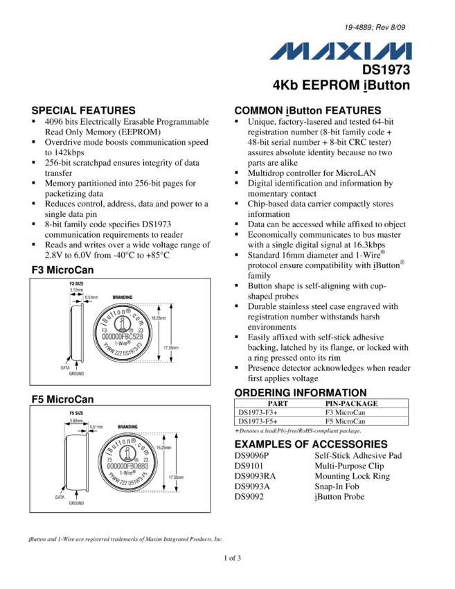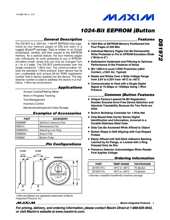 DS2432 1Kb Protected 1-Wire EEPROM with SHA-1 Engine
