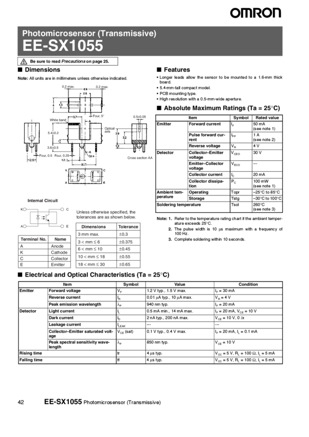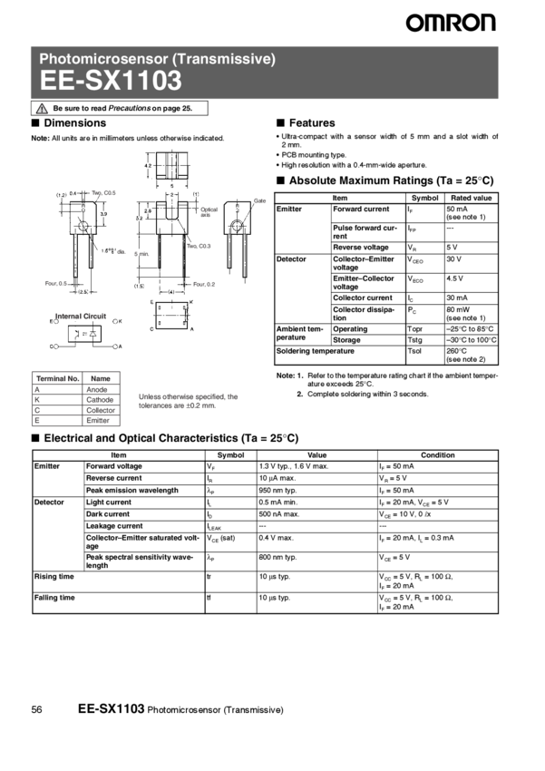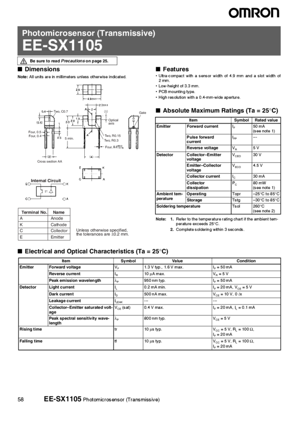 Photointerrupter Transmissive 2mm Photologic, Open Collector 5-Pin