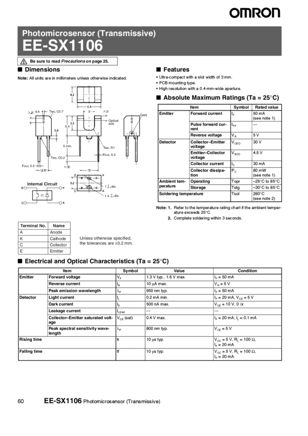 Photointerrupter Transmissive 1mm Phototransistor 4-Pin T/R