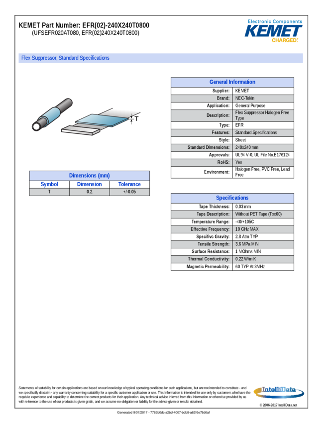 Flex Suppressor 240 x 240 x 0.2mm For Electronic Equipment