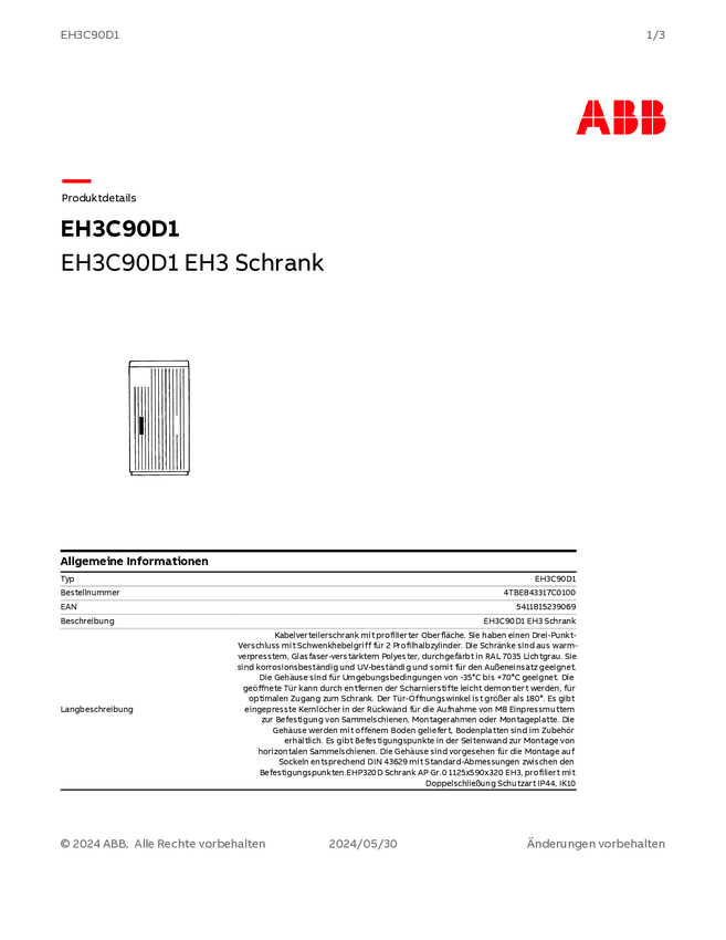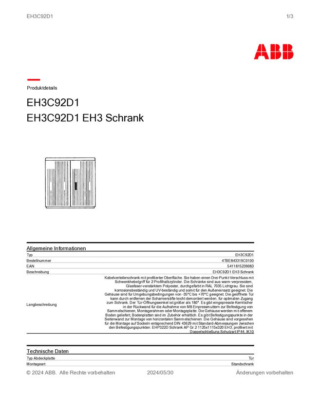 Striebel & John 4TBE843320C0100 EHP323D Szafka rozdzielcza montaż podłogowy Content 1 szt.