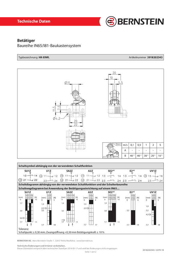 Bernstein 3918202344 DGHK-EINR. Aktuator dźwignia rolkowa 1 szt.
