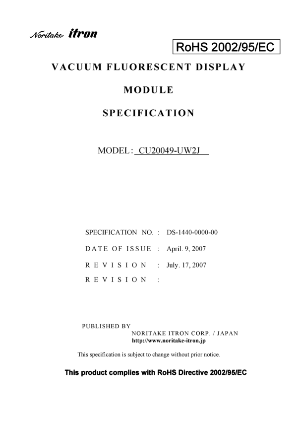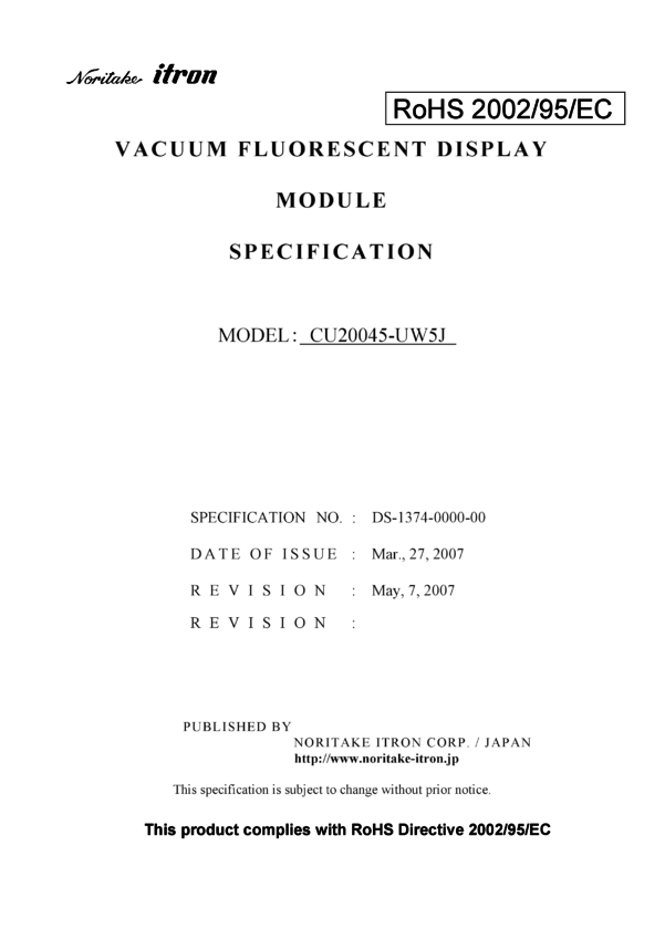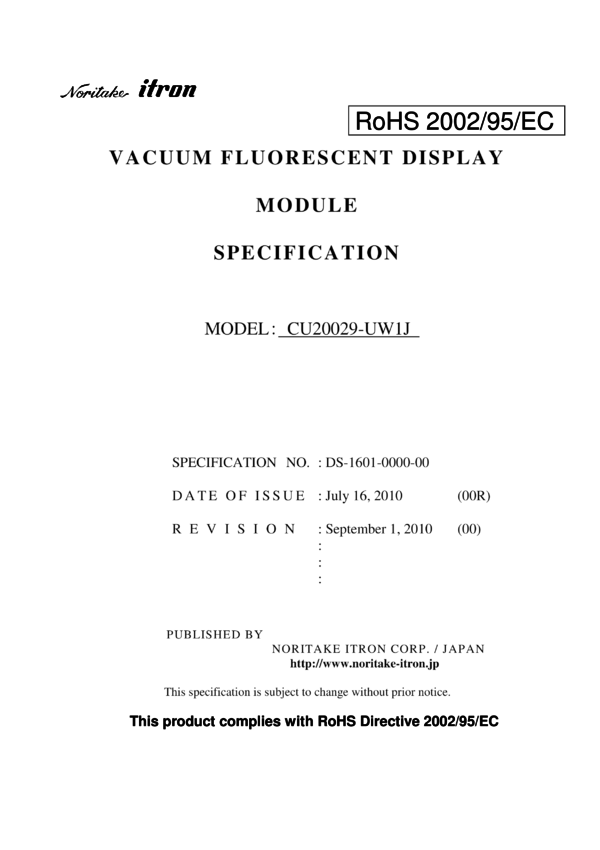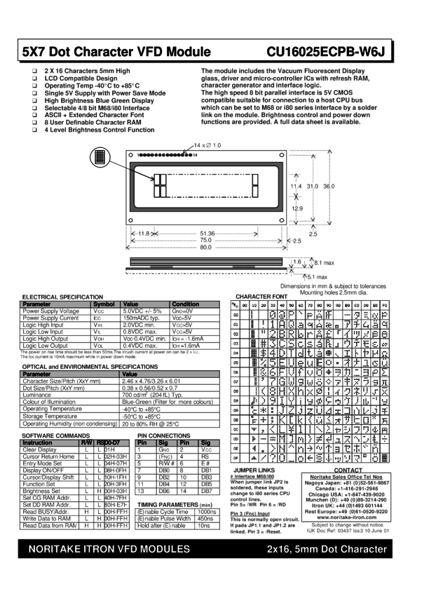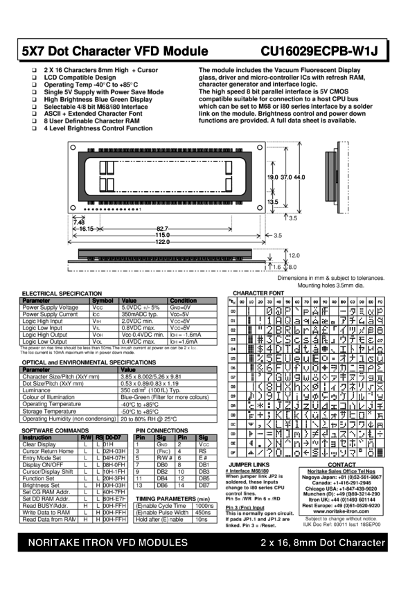 Matryca VFD-CU20029-UW1J, 20x2 dużych znaków, ekran 130 x 32 mm, +5V,-40C/+85C, Noritake