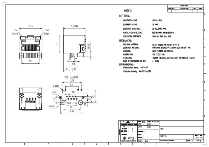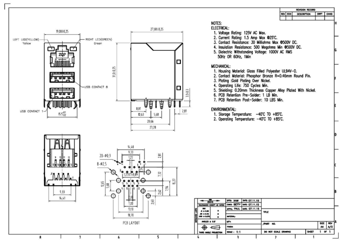 Gniazdo , 8-stykowe, górny zatrzask, ekranowane , styki 50μ" Au