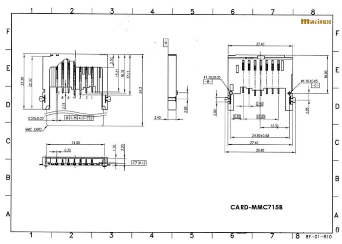 Listwa dwurzędowa, bez ekranu, , 8-stykowych, styki 6μ" Au