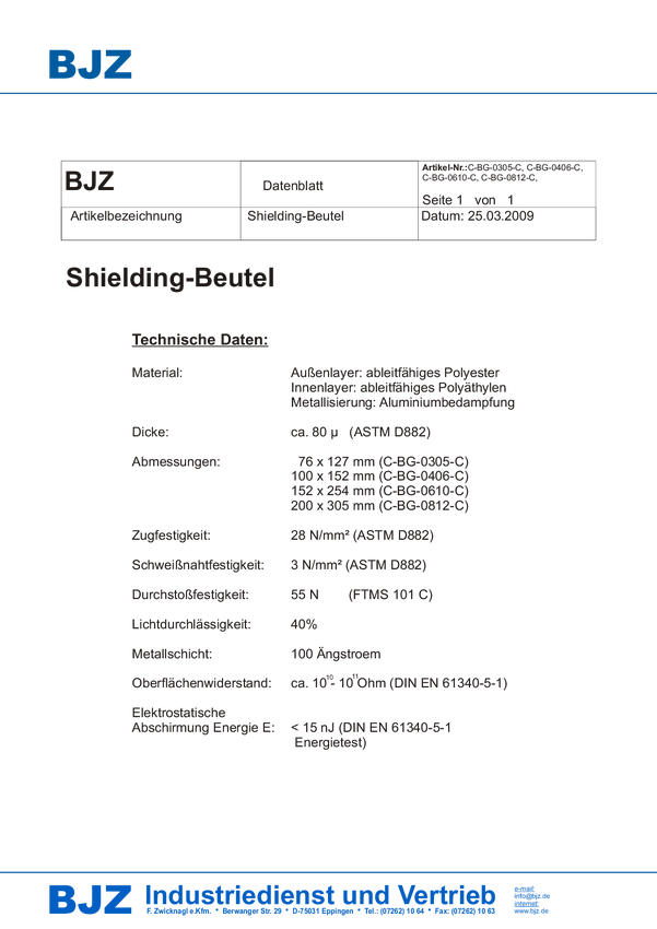 Torba ESD (D x S) 76 mm x 127 mm ekranowanie Kod ESD S BJZ