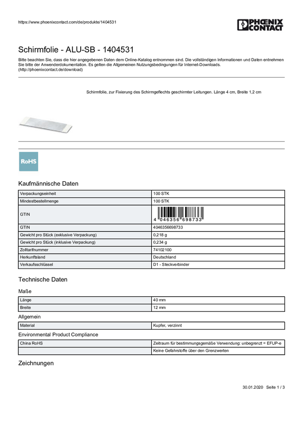 Phoenix Contact 1404531 Folia ekranująca ALU-SB, 100 szt.