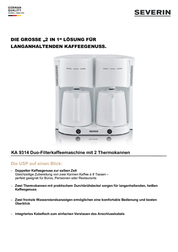 Ekspres do kawy Severin KA 9314 KA 9314 2000 W