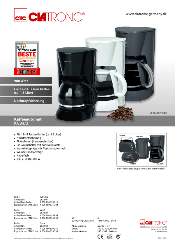 Ekspres do kawy Clatronic 263591 KA 3473 900 W