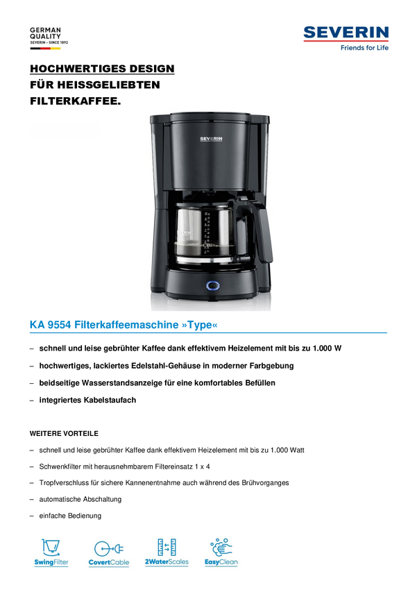 SOGO Human Technology Drip Inox 10 Ekspres do kawy czarny Pojemność (ilość kubków)=10 szklany dzbanek, Funkcja utrzymani