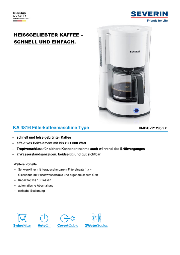 Ekspres do kawy Severin KA 4816 Type 1000 W