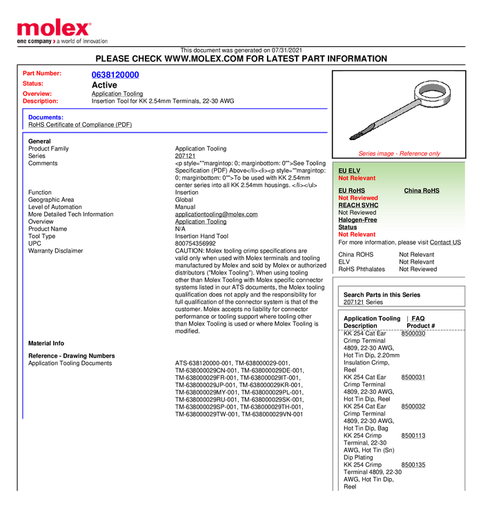 narzędzie do ekstrakcji Molex MOL Power & Signal Sol. 638241200 Molex Zawartość: 1 szt.