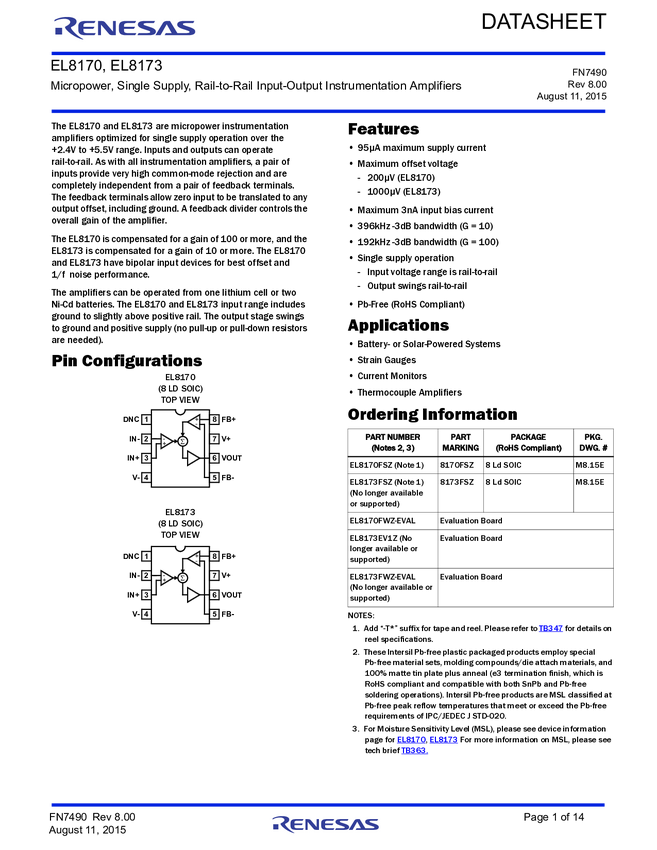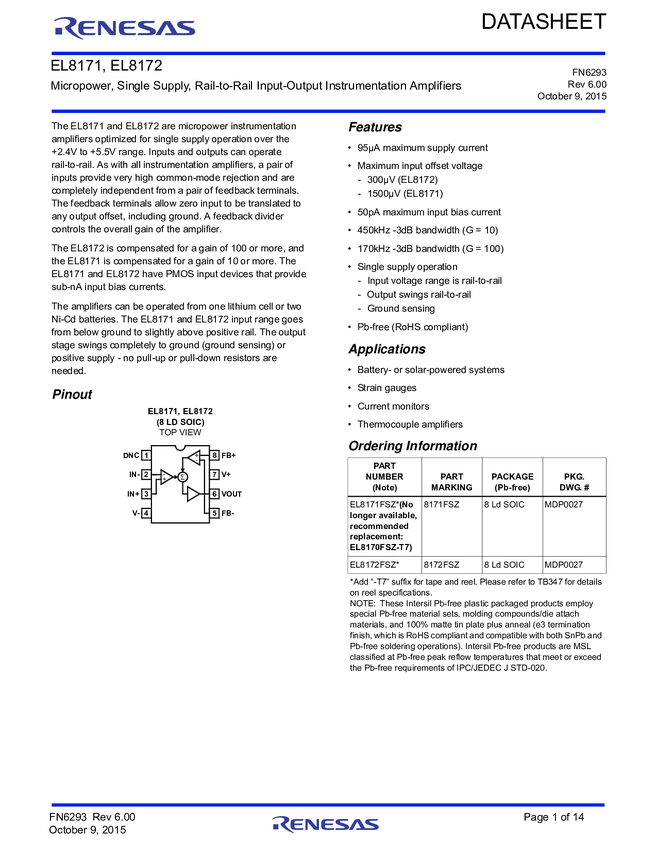 Micropower, Single Supply, Rail-to-Rail Input-Output Instrumentation Amplifiers
