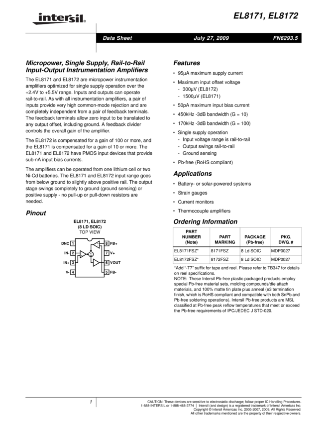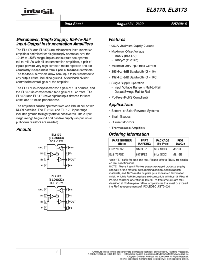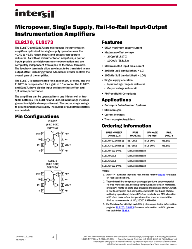 Micropower, Single Supply, Rail-to-Rail Input-Output Instrumentation Amplifiers