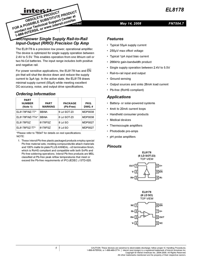 Micropower Single Supply Rail-to-Rail Input-Output (RRIO) Precision Op Amp