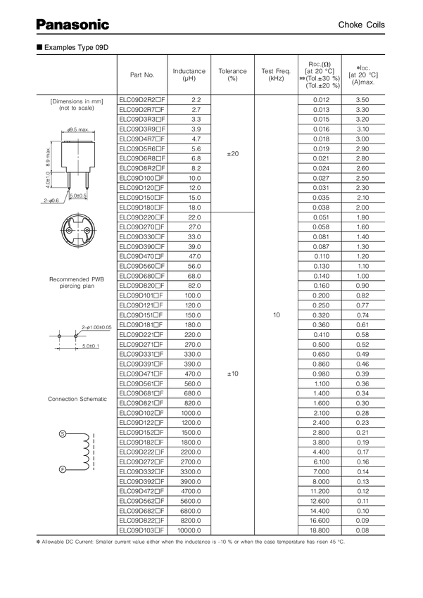 Panasonic ELC09D3R9DF Cewka enkapsulowane radialny THD Wymiary siatki 5 mm 3.9 µH 0.016 Ω 3.10 A 1 szt.
