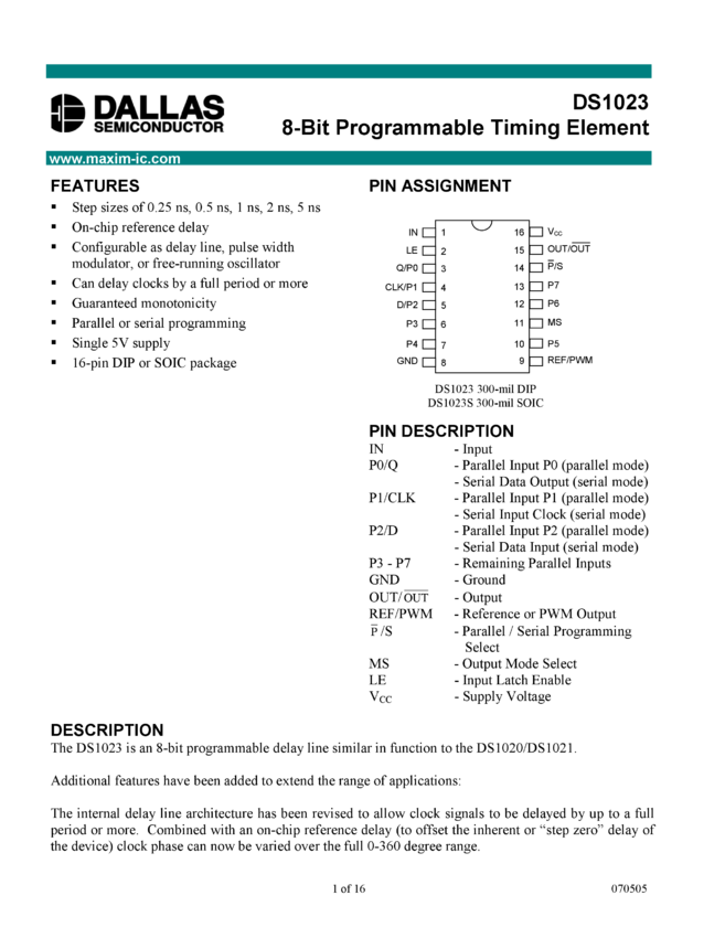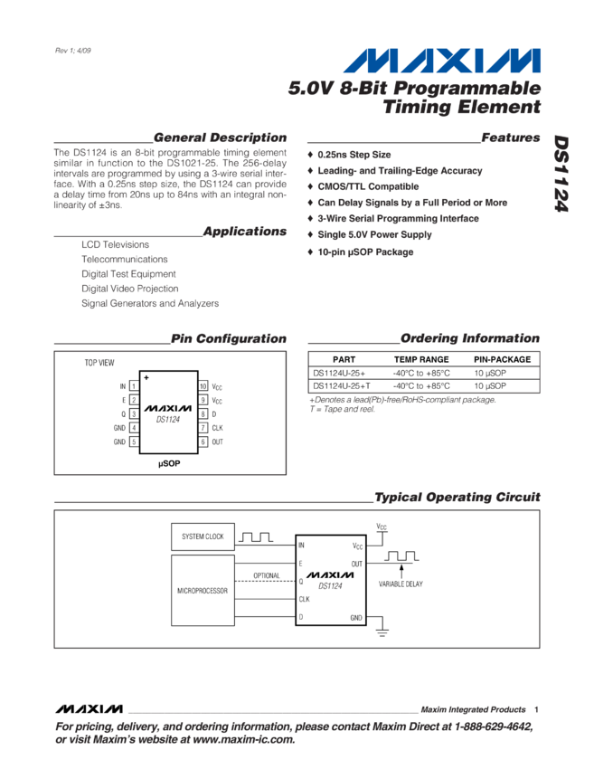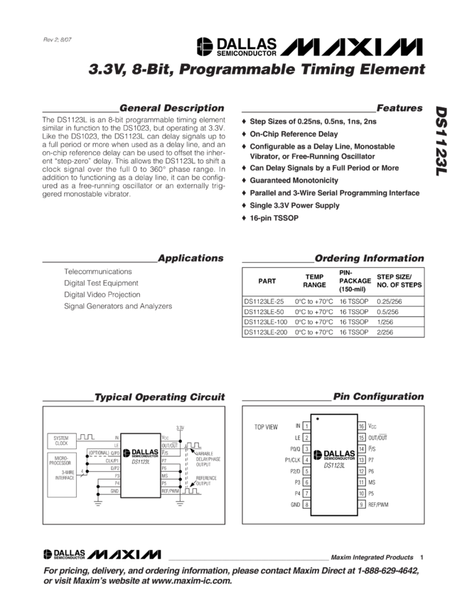 DS1123L 3.3V, 8-Bit, Programmable Timing Element