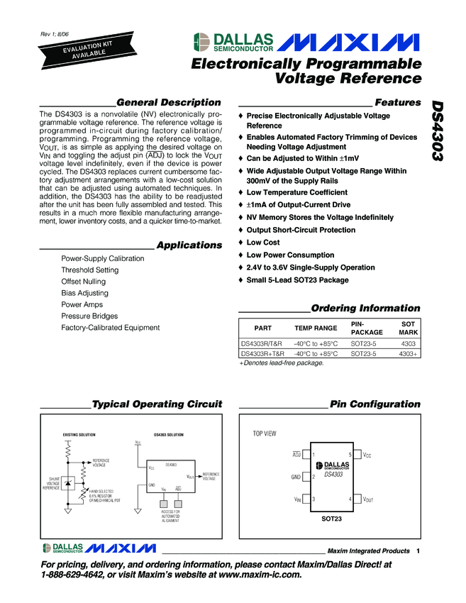 DS4303, DS4303K Electronically Programmable Voltage Reference
