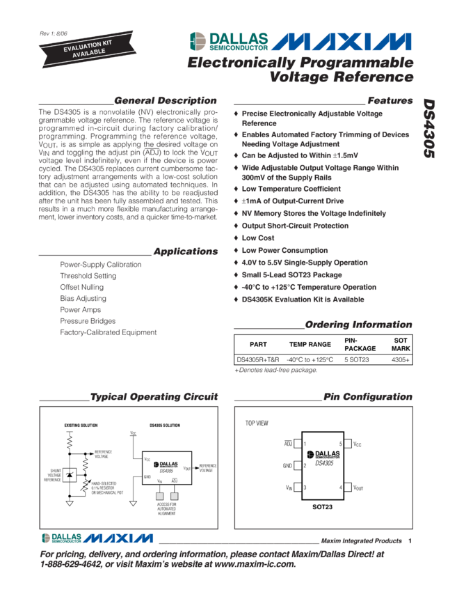 DS4305, DS4305K Electronically Programmable Voltage Reference