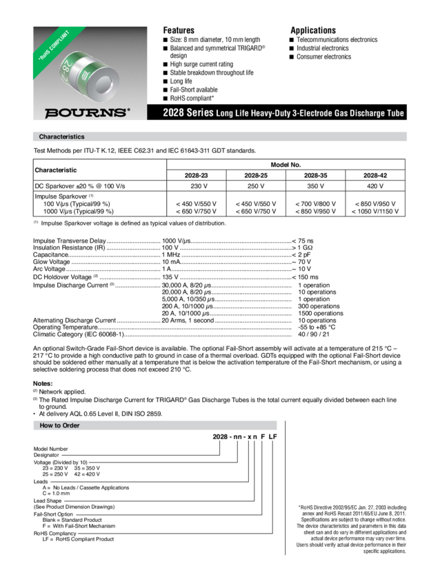 Surge Arrestor 3-Electrode Arrestor 230VDC 25KA Thru-Hole