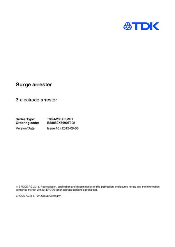 Surge Arrestor 2-Electrode Arrestor 230VDC 2kA SMD T/R