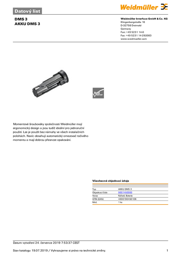 Weidmüller AKKU DMS 3 9007450000 Akumulator do elektronarzędzi