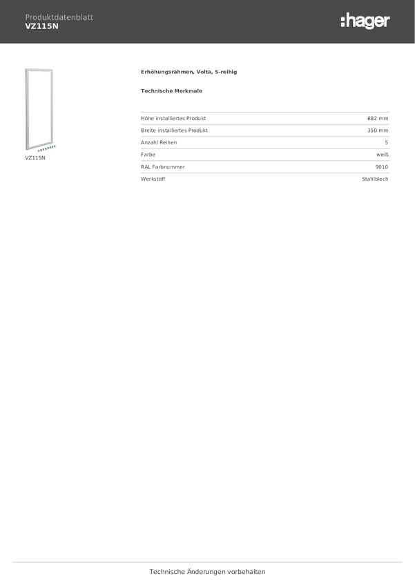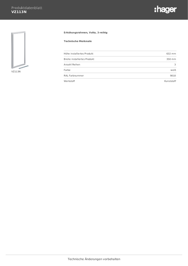 Hager VZ113N Rama elewacji tworzywo sztuczne biały 1 szt.