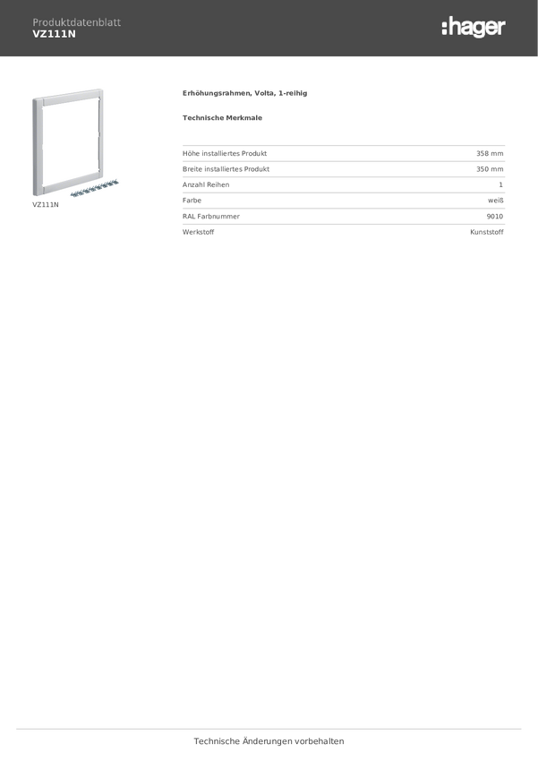 Hager VZ111N Rama elewacji tworzywo sztuczne biały 1 szt.