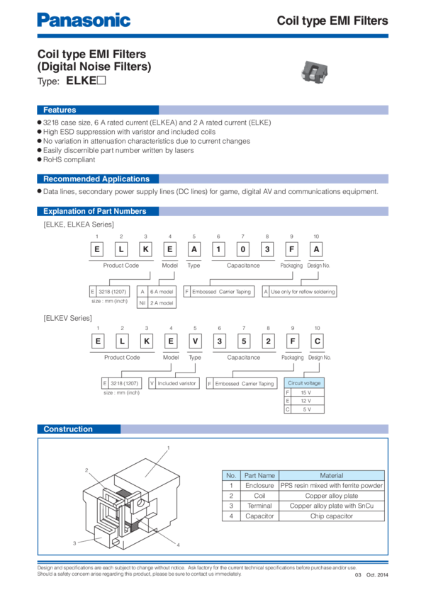 EMI Filter 100MHz 2A 50VDC J-Bend SMD Embossed Carrier T/R