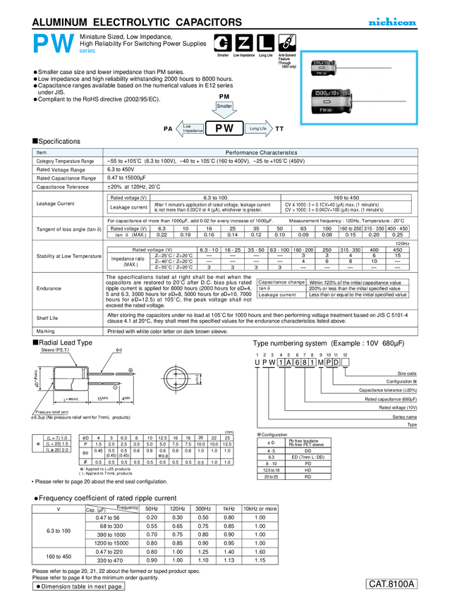 Kondensator elektrolityczny Elko PW Nichicon UPW1J152MHD, 1500 uF, 63 V