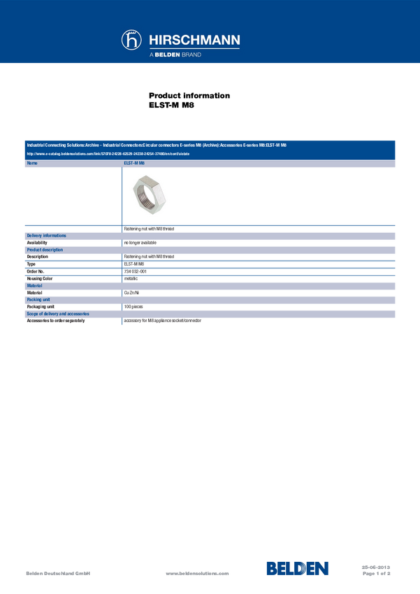Złącze Hirschmann ELST-M M8 734 032-001-300 300 szt.