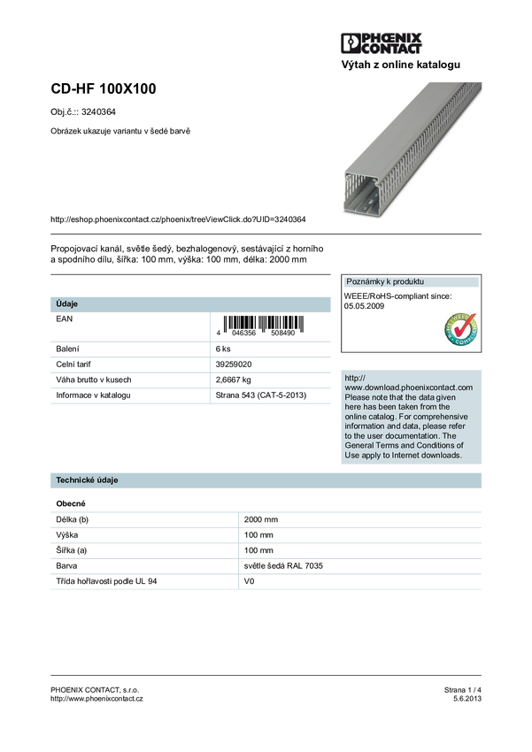 Kanał na wiązki Phoenix Contact CD-HF 100X100 3240364 Kanał kablowy, elstyczny (D x S x W) 2000 x 100 x 100 mm 6 szt.