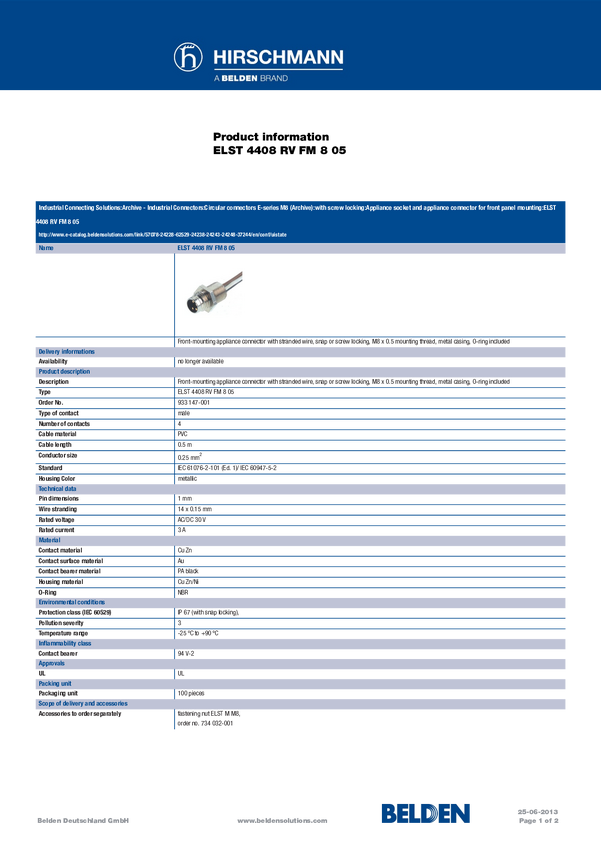 Złącze Hirschmann ELST 4408 RV FM 805 933 147-001-100 1 szt.
